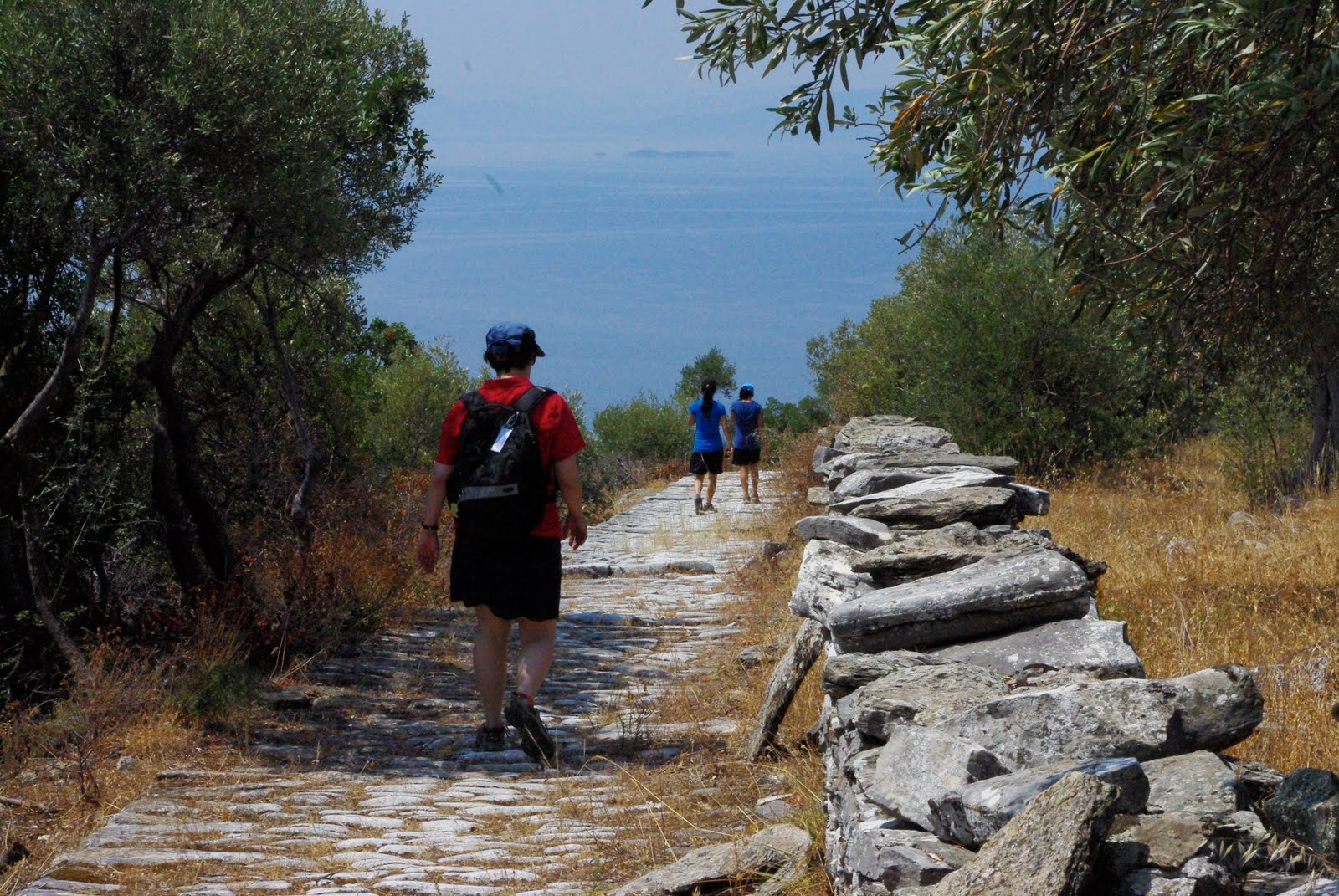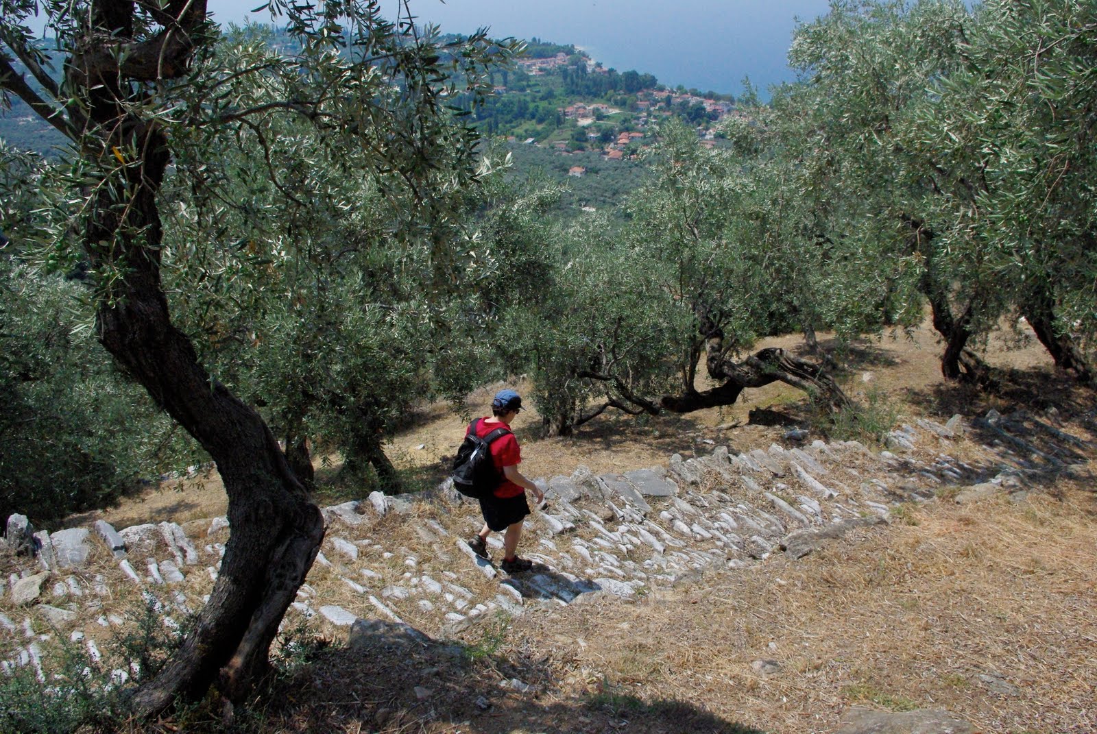 Entre le village de Pina Kates et la petite ville de Kala Dera, dans la région du Mont Pelion, en Grèce, il y a un kalderimi bien entretenu, pittoresque, sinueux à souhait et pas trop pentu. Bref, du kalderimi haut de gamme, catégorie cinq étoiles.