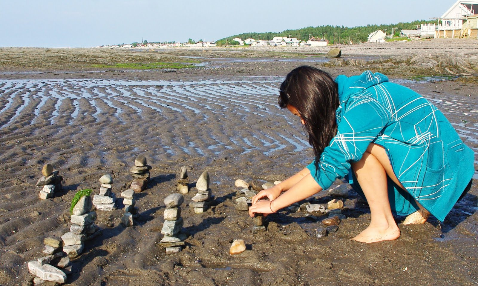 Land art sur la plage de Sainte-Flavie, dans le Bas St-Laurent.